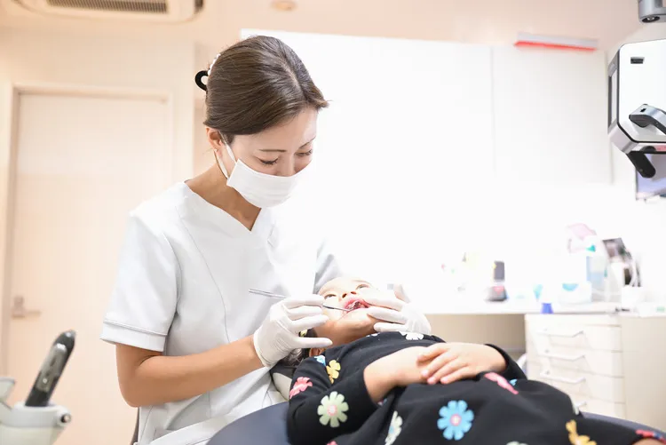 検診では、むし歯の有無、歯並び、噛み合わせの状態を丁寧に確認します。